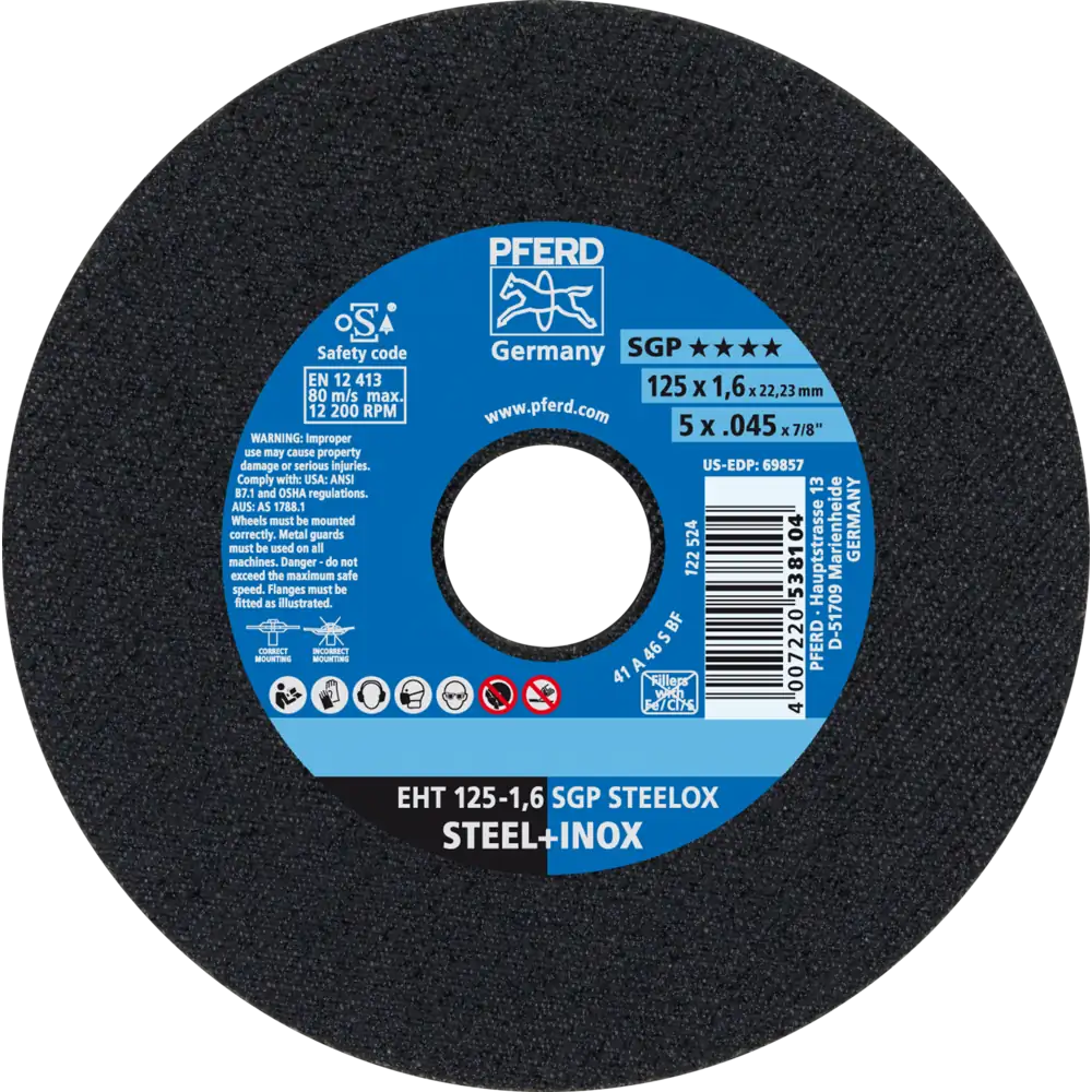 Pferd Tools Trennscheibe EHT 125×1,6×22,23 mm gerade Speziallinie SGP STEELOX für Stahl/Edelstahl