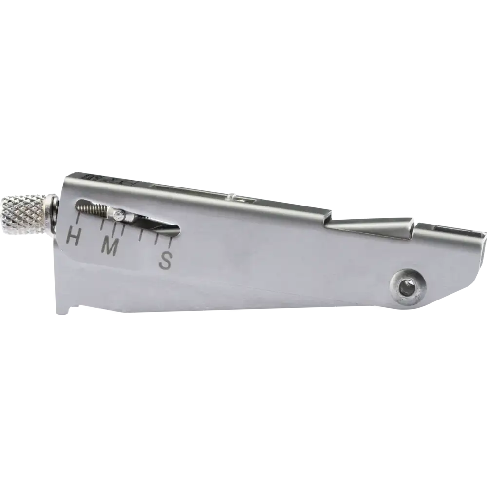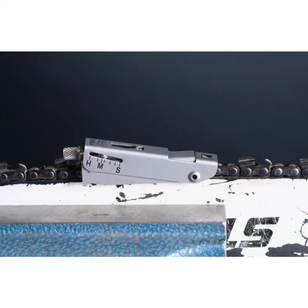 Die speziell entwickelte verstellbare Tiefenbegrenzerlehre ermöglicht die Kontrolle des Abstands zwischen Sägezahn und Tiefenbegrenzer und ist das ideale Hilfsmittel, um den Tiefenbegrenzer der Sägekette individuell einzustellen und so das optimale Schärfergebnis für Holzsägearbeiten zu erzielen. Mit der verstellbaren Tiefenbegrenzerlehre kann der Abstand zwischen Sägezahn und Tiefenbegrenzer kontrolliert werden.