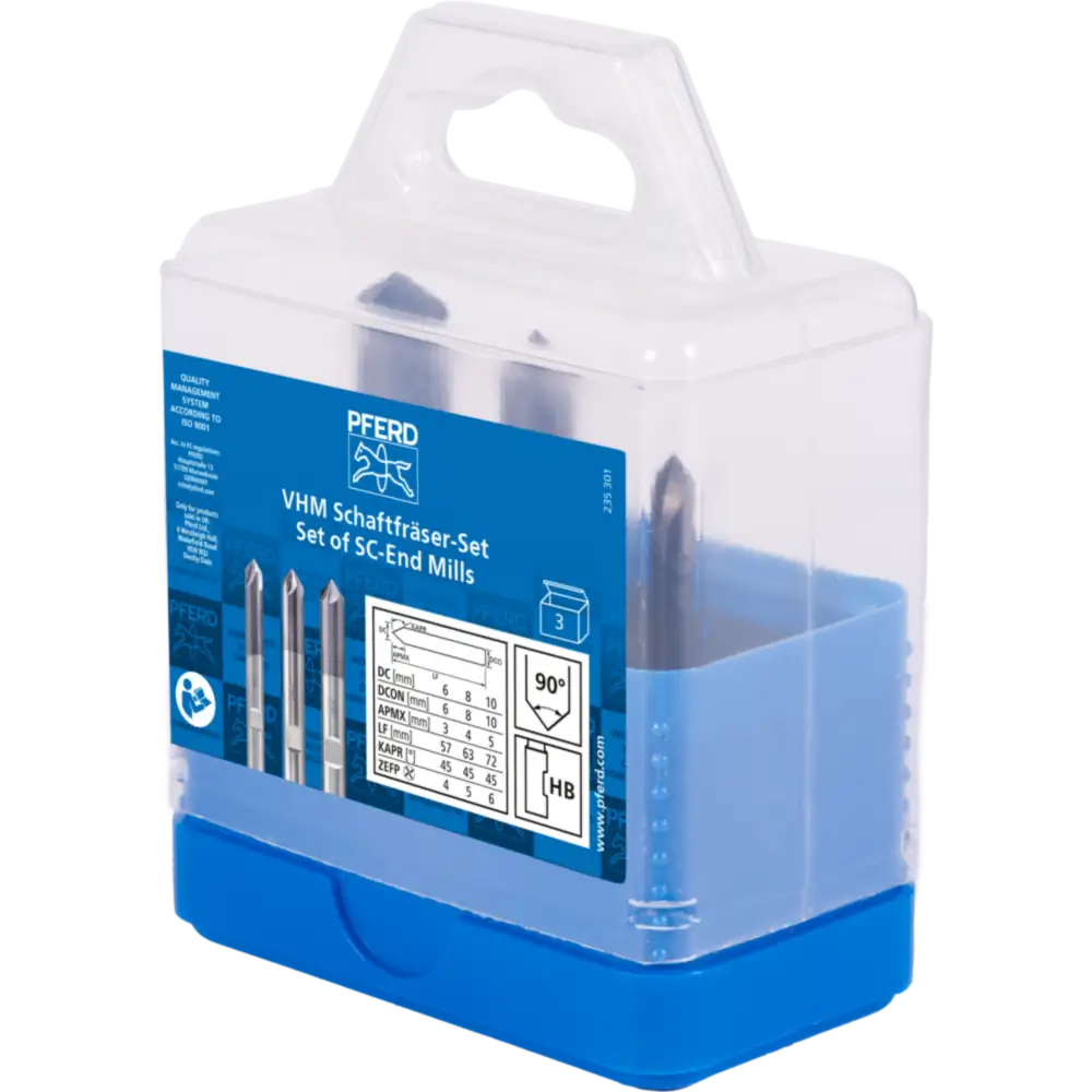 Pferd Tools VHM Entgratfräser Set 3-tlg. ⌀ 6/8/10 mm 90° TiAlN Schaft HB Universal Line Anfasen Entgraten