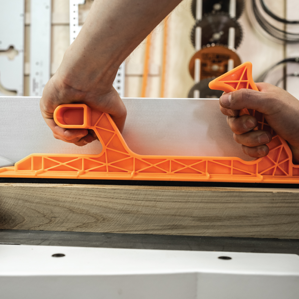 Das IGM Vorschubaparat PM40 dient der sicheren Materialbewegung beim Hobeln. Dank seiner robusten Bauweise und zwei Griffen ist die Führung für massiveres Material und große Bretter geeignet. Ergonomisch geformte Griffe liegen fest in der Hand. Zusammen mit dem rutschfesten Unterteil aus SBR-Schaum und der soliden Konstruktion gibt Ihnen die Führung die Sicherheit, dass das Material beim Arbeiten niemals verrutscht. Ein zuverlässiger Leitfaden ist ein unverzichtbares Werkzeug für jede Werkstatt.