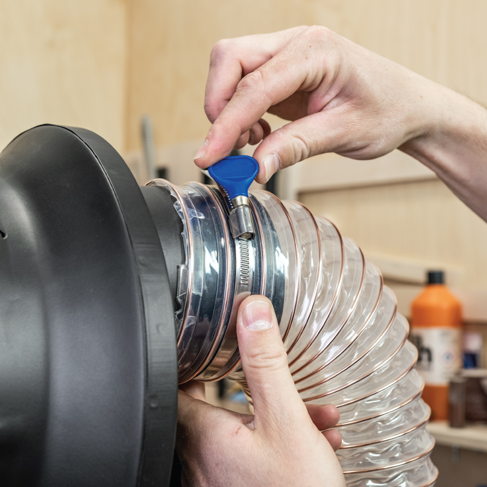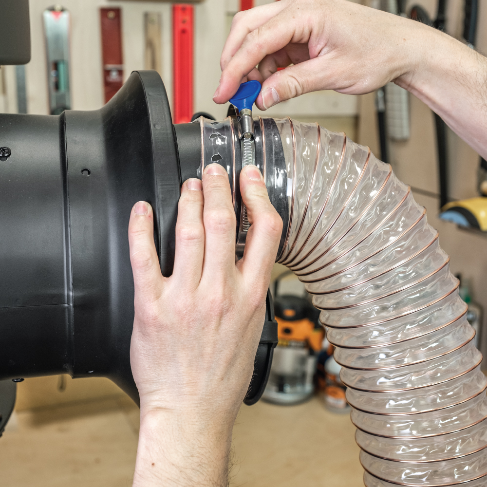 Eine einfache Befestigungsschelle aus Stahl mit Schmetterlingsgriff aus Kunststoff für eine schnelle und einfache Anwendung und ideal für die meisten 100 mm Schlauchanwendungen, wie etwa Maschinen-Absaugstutzen oder Verbindungsstücke. Spannbereich 92 – 110 mm. Sie hat eine doppelte Brücke für den Schlauchdraht, um eine bessere Klemmung zu ermöglichen. Besonders nützlich, wenn Verstopfungen auftreten; sie können sofort behoben werden, ohne dass ein Schraubendreher benötigt wird.