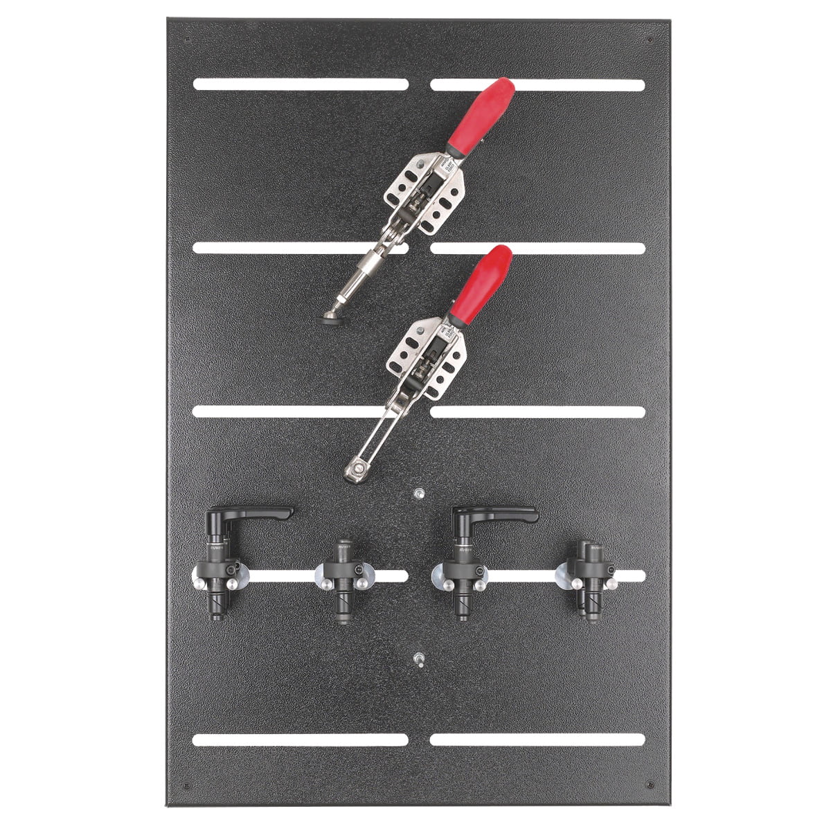 Das Ordnungspaneel von Stürmer Maschinen GmbH bietet Aufnahmestifte, einen Waagrechtspanner und einen Senkrechtspanner mit Klemmbolzen, sowie vier Vario Spannbolzen mit Innensechskantschlüssel-Klemmung und Klemmhebelfixierung.