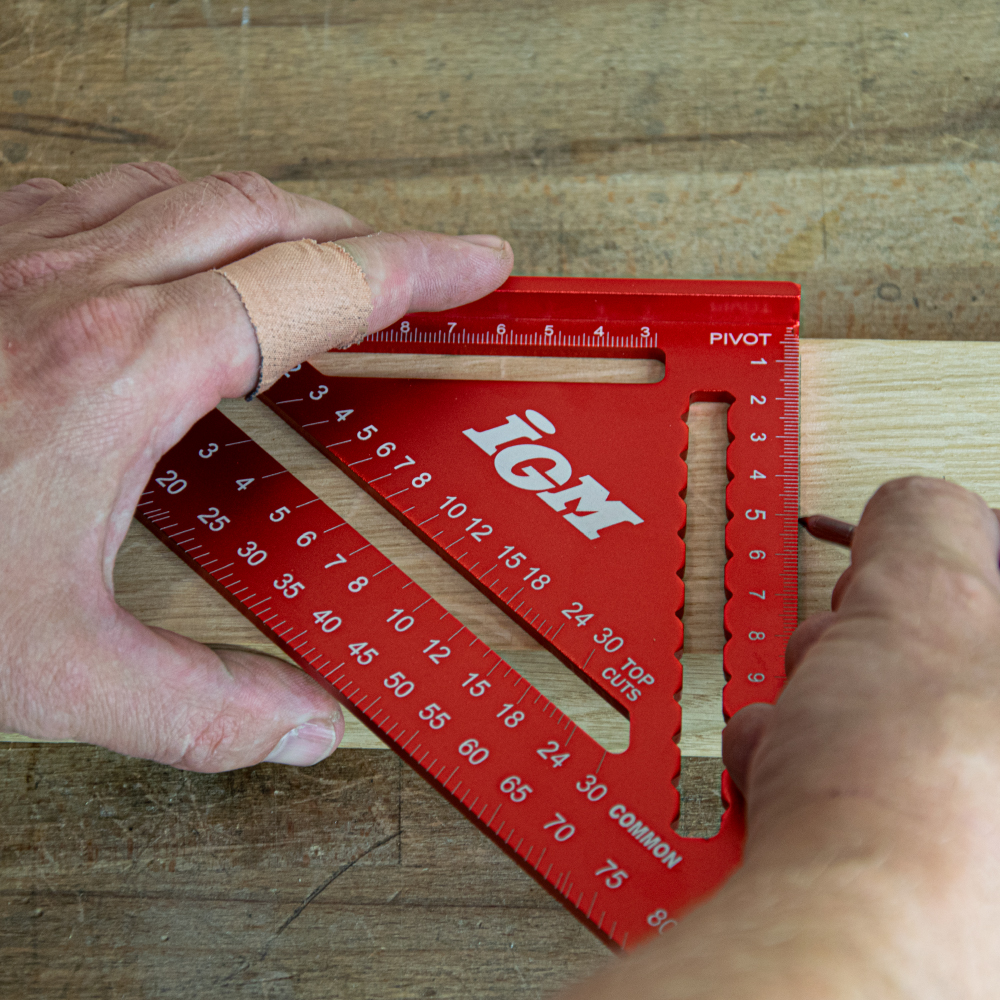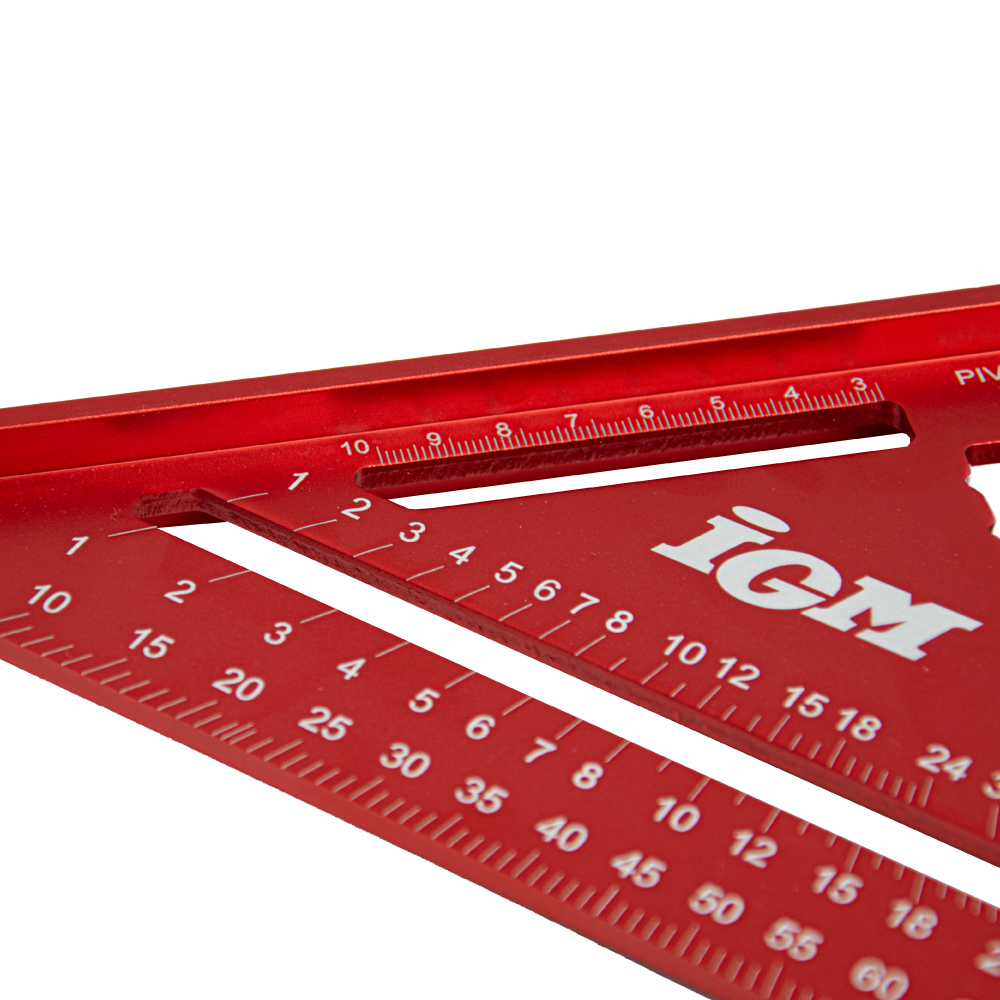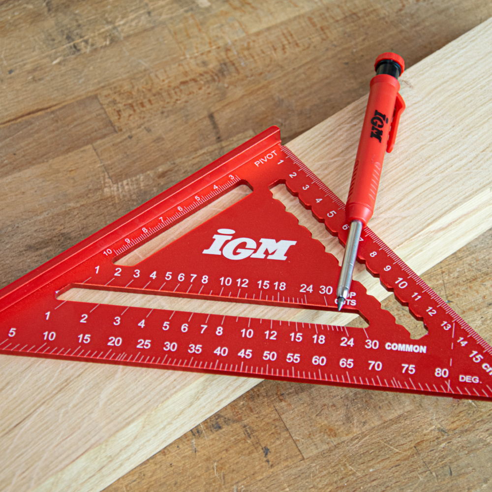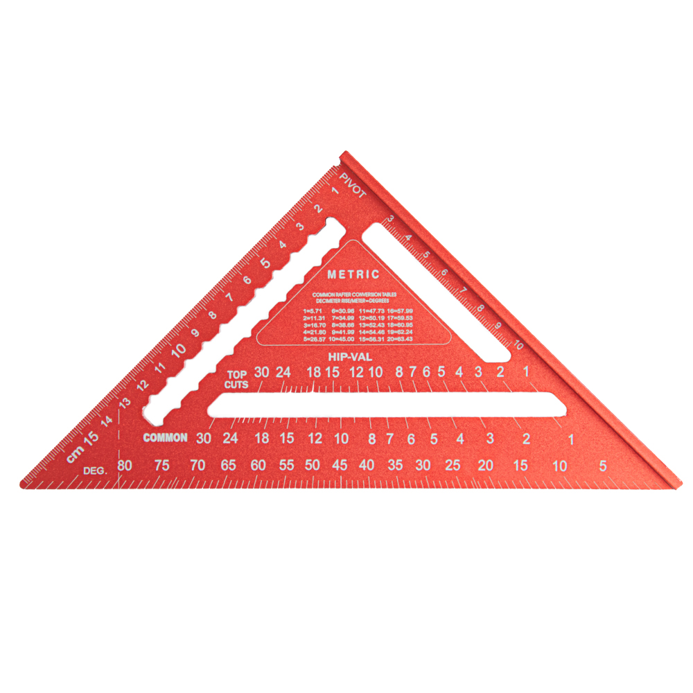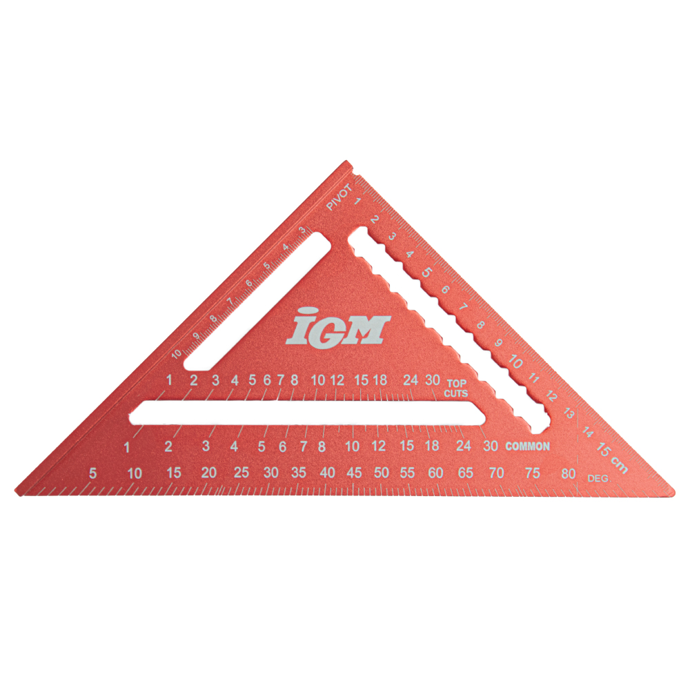 Präzises Duraluminium IGM Zimmermannswinkel ist ein Muss für jeden Zimmermann. Der robuste Winkel hat auf beiden Seiten gut ablesbare, laserbeschriftete Skalen. Die vertikale Seite ist 180 / 300 mm lang mit Kerben von 5 mm, was ein schnelles Zeichnen von parallelen Linien in Längsrichtung ermöglicht. Die Hypotenuse hat eine Skala von 0° bis 90° und eine Skala zum Erstellen von gemeinsamen Sparren, Eck- und Dachrinnenbalken. Es ist ideal zum schnellen Zeichnen von Linien oder als Sägeführung. Vereinfacht den Aufbau der Dachkonstruktion erheblich.