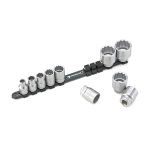 10 Steckschlüsseleinsätze mit Doppelsechskant 1/2″ Nr. 50: 10; 13; 14; 17; 19; 22; 24; 27; 30; 32 mm