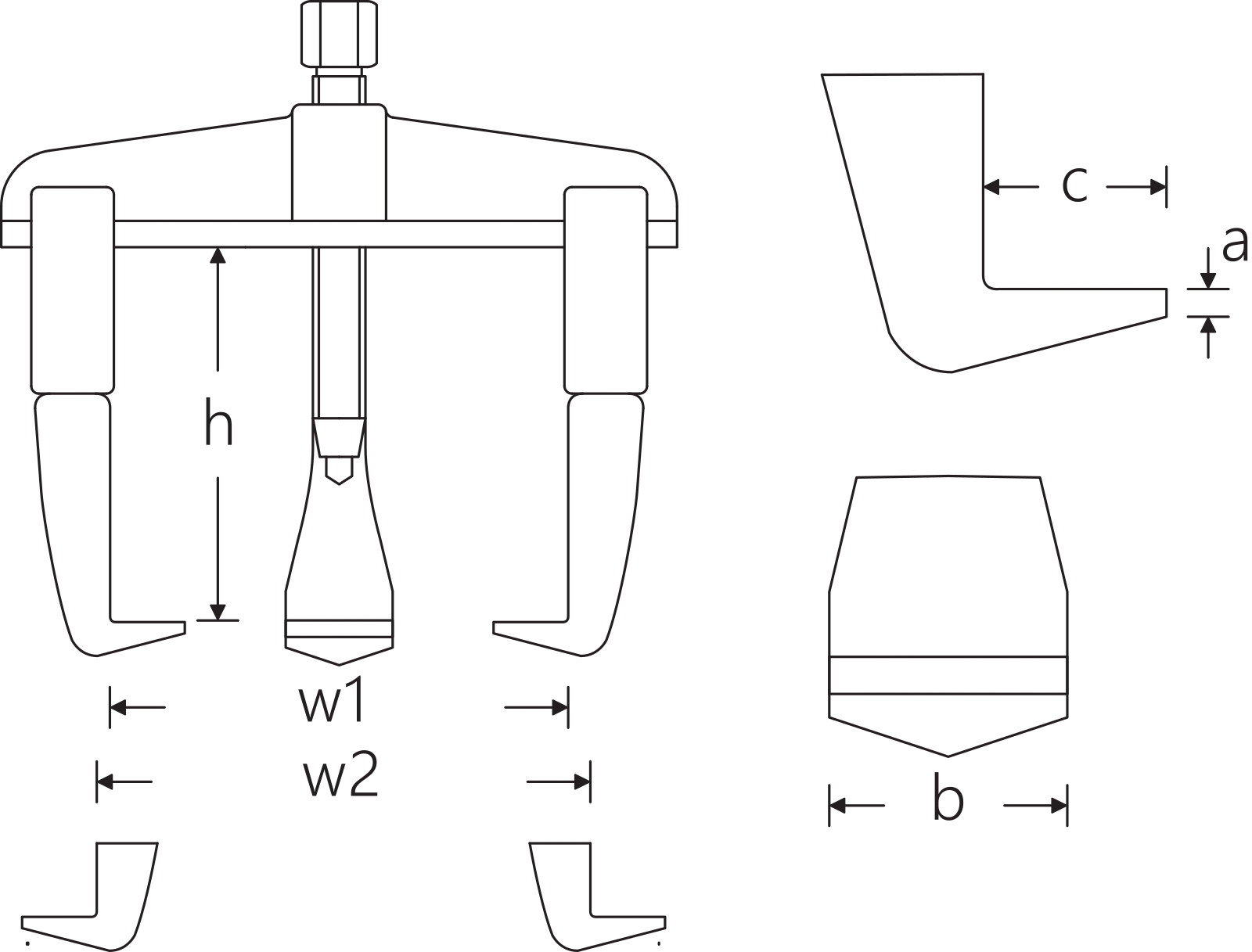 • Zum schnellen und sicheren Abziehen von Zahnrädern, Kugellagern, Lüfterädern und zum Ausziehen von Kugellageraußenringen und Buchsen aus Bohrungen.