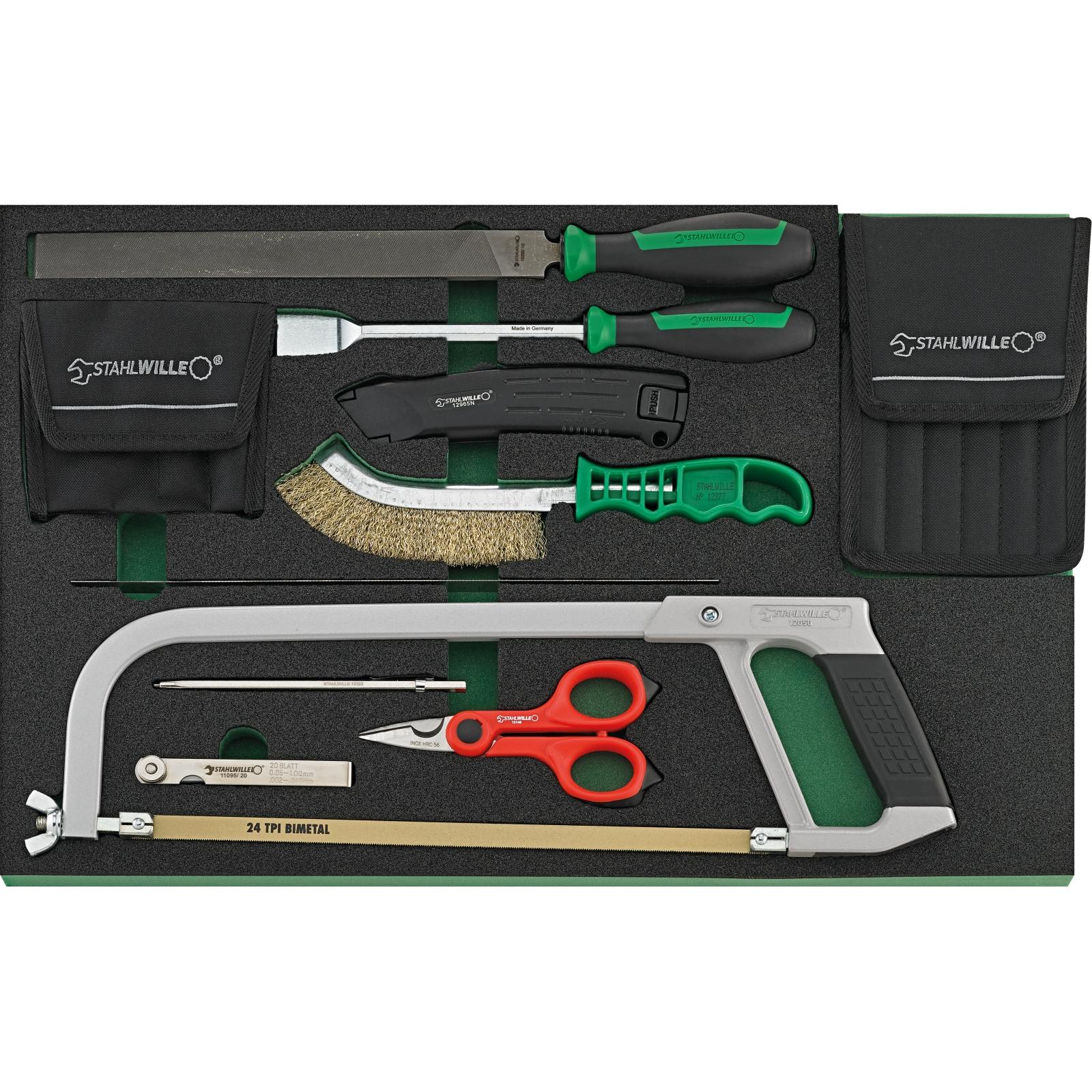 • Das Werkzeug ist sicher aufbewahrt in chemikalienbeständigen, langlebigen Schaumstoffeinlagen mit präzisen Werkzeugaussparungen und einer farbigen Signalunterseite.