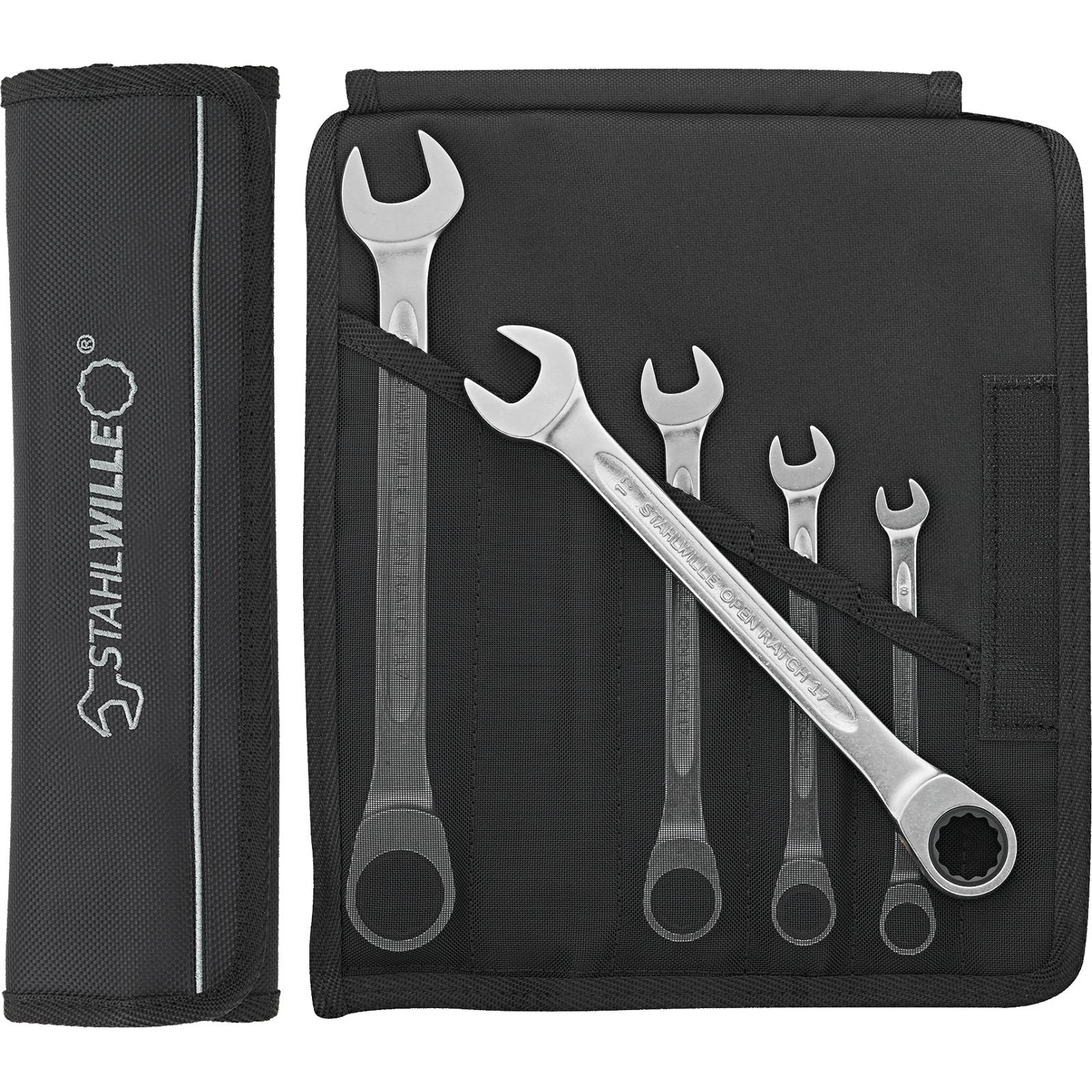 STAHLWILLE Ratschenringmaulschlüssel-Satz OPEN RATCH 17F/5 8-19 5 St.