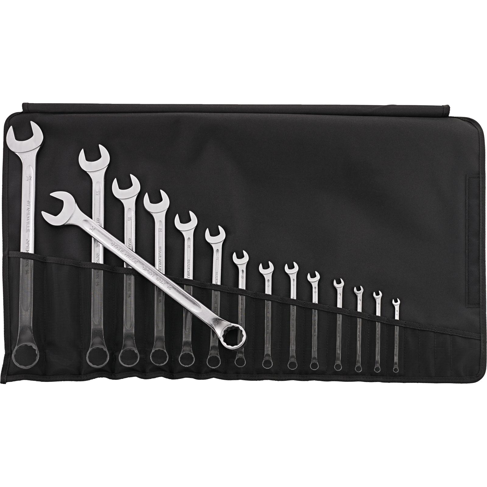 - Made in Germany – Ringmaulschlüssel-Satz , 15 St., 6-32 mm, Ringseite 15° abgewinkelt, DIN 3113 Form B / ISO 7738 Form B, Chrome Alloy Steel.