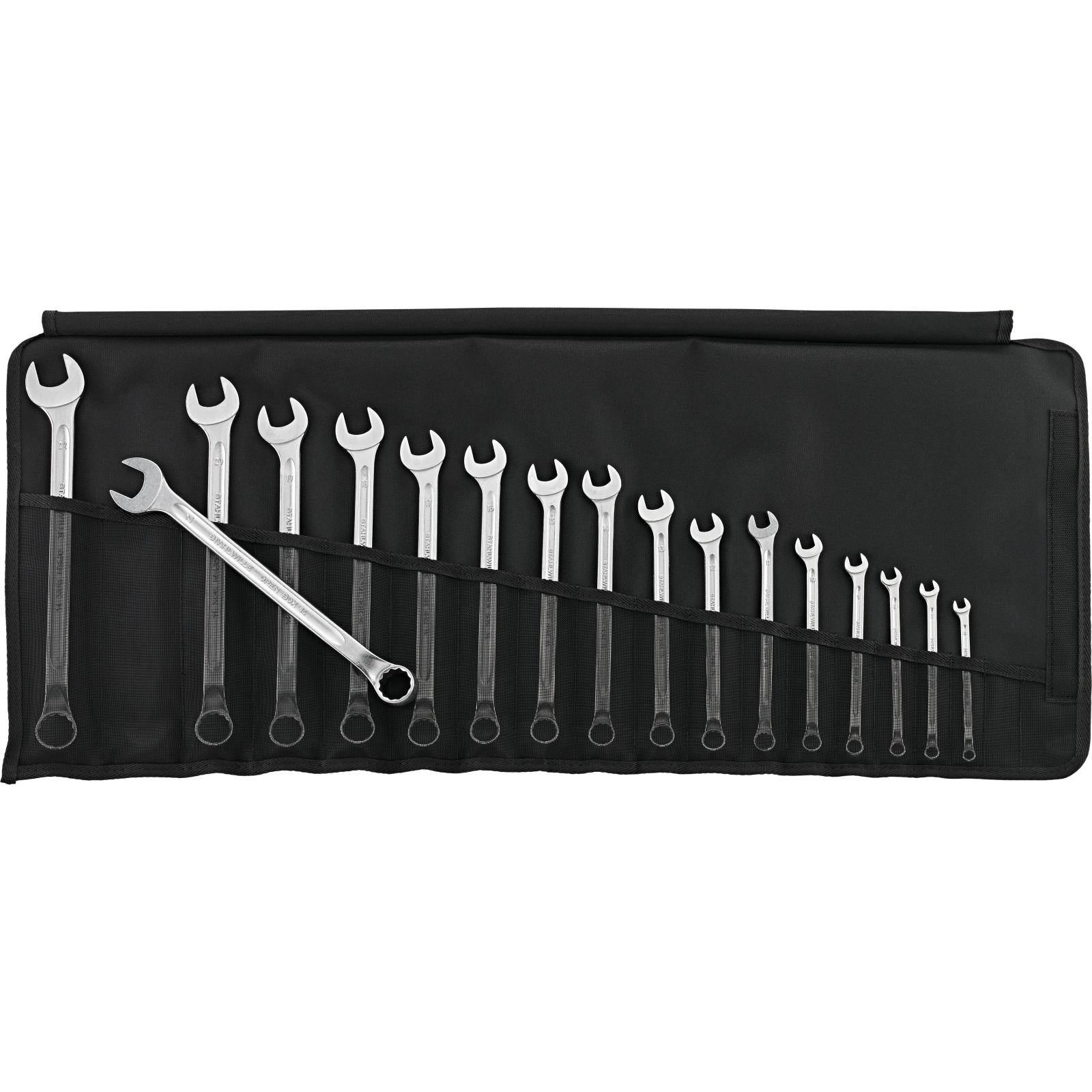 - Made in Germany – Ringmaulschlüssel-Satz , 17 St., 6-22 mm, Ringseite 15° abgewinkelt, DIN 3113 Form B / ISO 7738 Form B, Chrome Alloy Steel.
