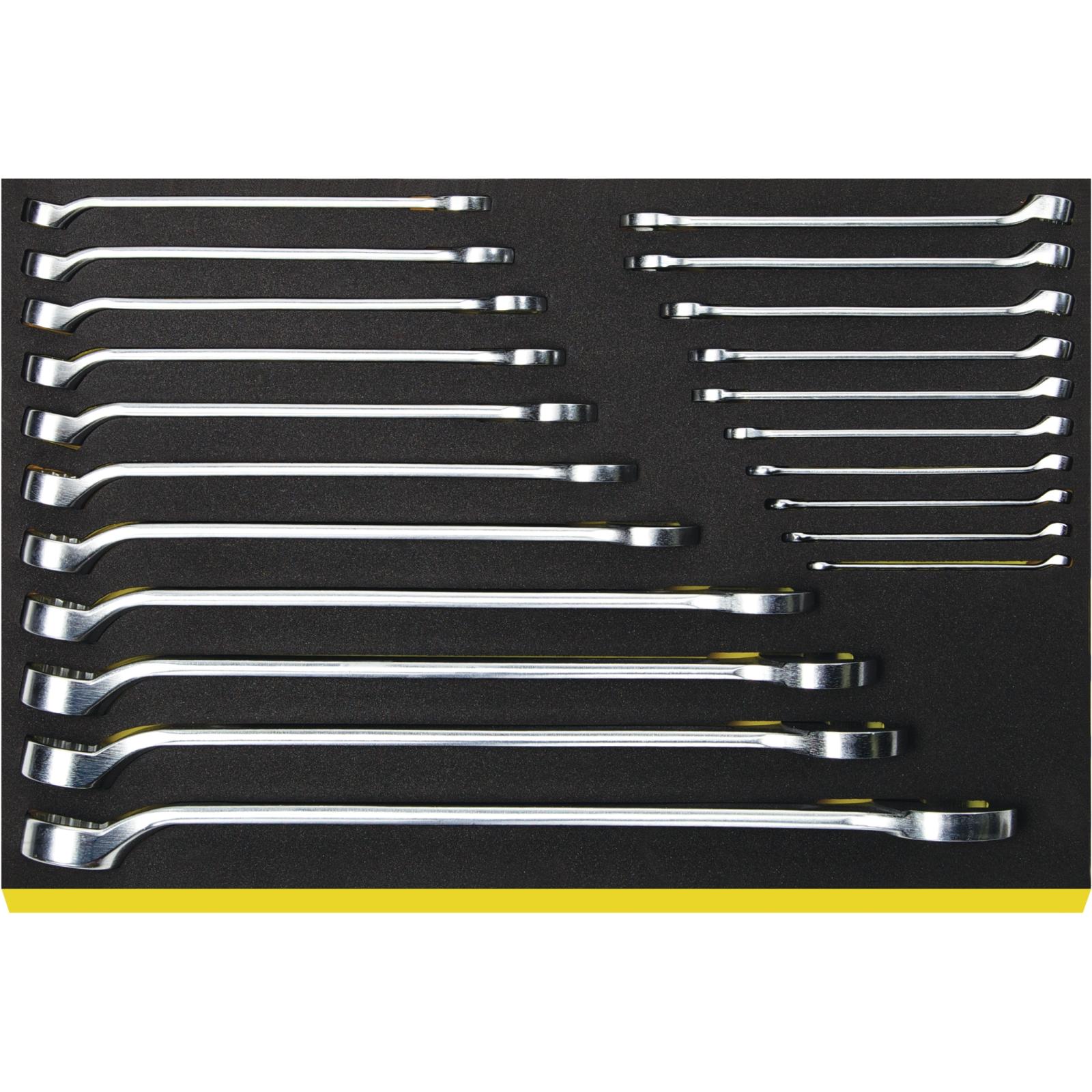 • Made in Germany – Ringmaulschlüssel-Satz in TCS-Einlage, 21 St., 6-36 mm, Ringseite 15° abgewinkelt, DIN 3113 Form B / ISO 7738 Form B, Chrome Alloy Steel.