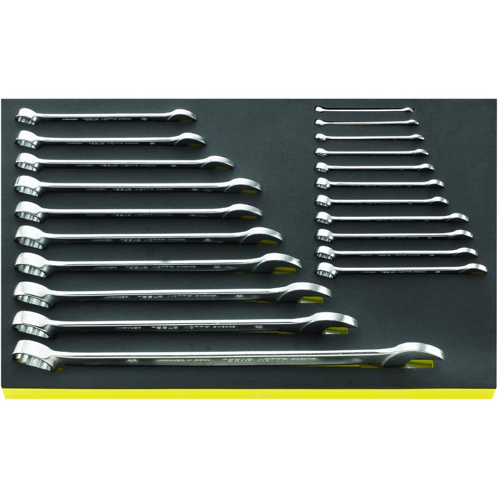 • Made in Germany – Ringmaulschlüssel-Satz in TCS-Einlage, 21 St., 6-36 mm, Ringseite 15° abgewinkelt, DIN 3113 Form A / ISO 7738 Form A, Chrome Alloy Steel.