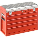 - mit 4 Schubladen, einem Deckelfach, Sicherheitsschloss und stabilem Aluminium-Strukturblech auf dem Deckel