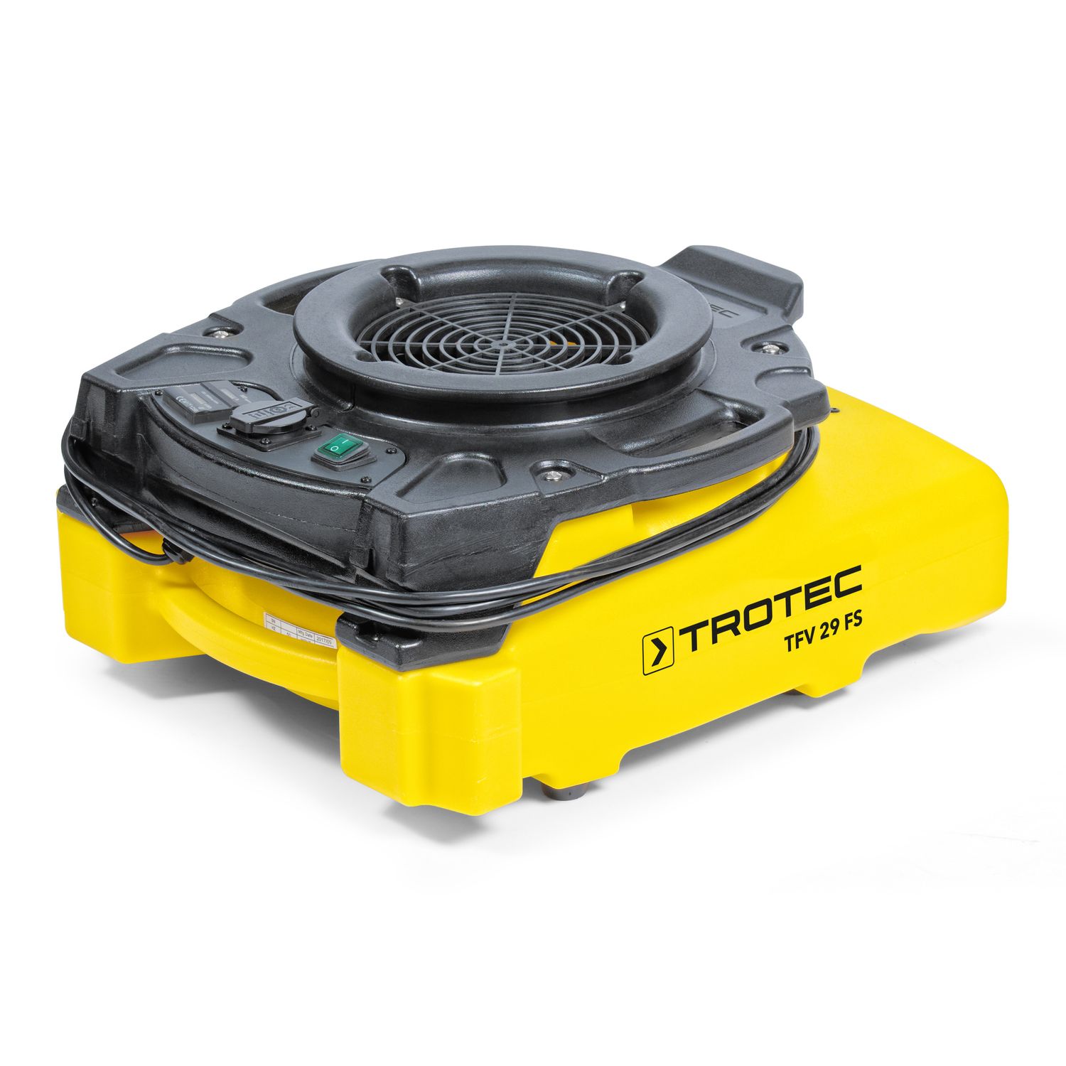 Der TFV 29 FS ist ein leistungsstarkes und platzsparendes Radialgebläse mit robusten Metallschaufeln, das hohe Luftleistung bei maximalem Druck ermöglicht und sich ideal für die Trocknung von Bodenoberflächen, Wänden und Decken eignet. Mit vier verschiedenen Aufstellpositionen, einem spritzwassergeschützten Betriebsschalter und einem Betriebsstundenzähler bietet das Gerät Flexibilität und Komfort, während die integrierte Servicesteckdose und das lange Anschlusskabel das Verbinden mehrerer Geräte an nur einer Steckdose ermöglichen. Dank seines geringen Gewichts und der beidseitigen Tragegriffe ist der TFV 29 FS leicht zu transportieren und kann platzsparend gestapelt werden. Mit einer Luftmenge von 1.150 m³/h, einer Leistungsaufnahme von 0,17 kW und einer Kabellänge von 5m ist dieses Gerät eine effiziente Lösung für Ihre Trocknungsbedürfnisse.