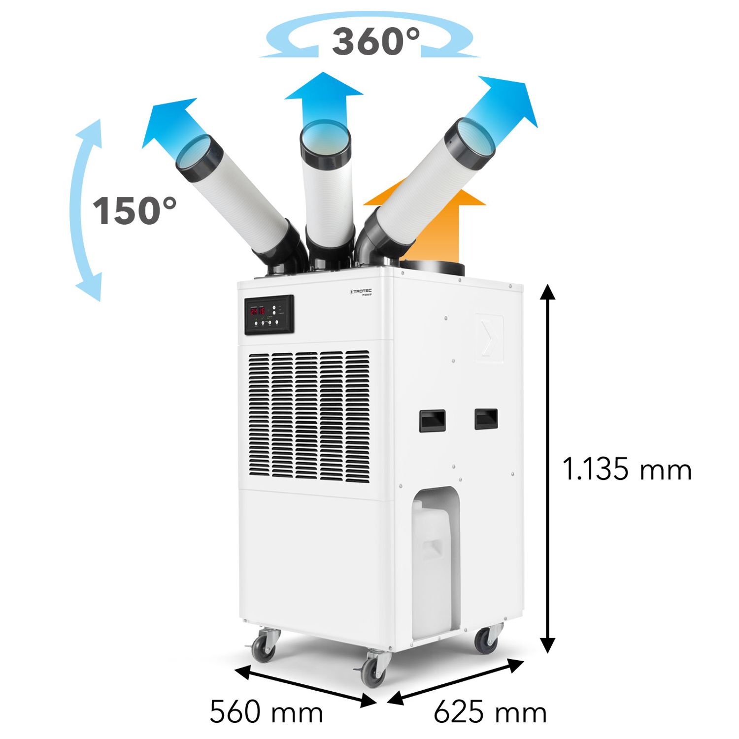 - Dreikanal-Spotcooler mit drei separat verstellbaren Kaltluftleitungen für verschiedene Zielbereiche
