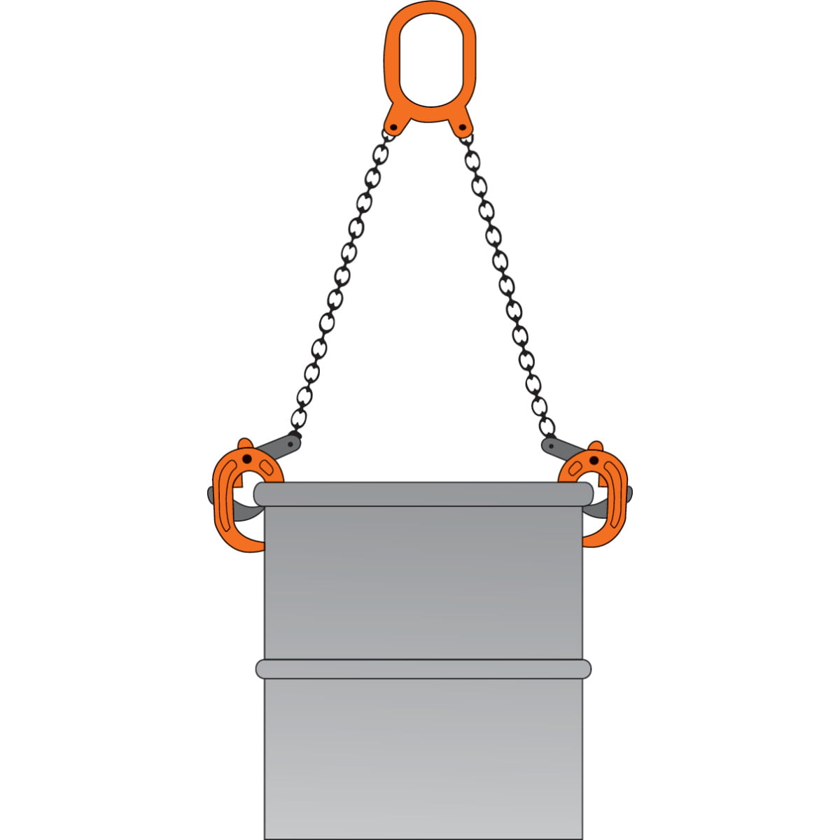 Die Stürmer Maschinen GmbH bietet eine robuste Fassaufnahme mit Kettenkonstruktion und Greifhaken, die sowohl stehende als auch liegende Fässer aufnehmen kann und ideal zum Aufrichten eines liegenden Fasses ist, mit einer Tragkraft von 1 Tonne und einem Greifbereich von 0 – 25 mm; sie wiegt lediglich 3,6 kg.
