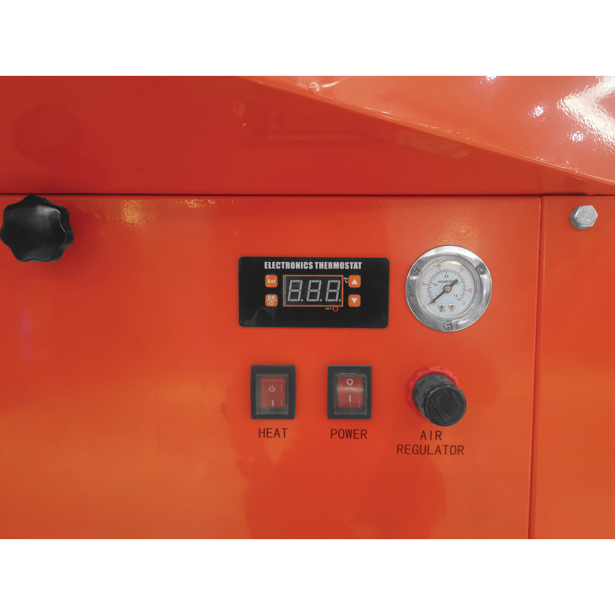 Die Stürmer Maschinen GmbH bietet eine hochmoderne, effiziente Reinigungsmaschine mit digitaler Temperaturregelung, großem leichtgängigem Deckel, Innenraum-Beleuchtung und Reinigungspistole mit Doppelfunktion. Die Maschine hat eine automatische Abschaltung, einen integrierten Druckluftanschluss und eine Arbeitskabine von 140 l. Sie kann bis zu 40 kg tragen und hat einen Reinigungsmitteltank von 8-14 l. Mit den Abmessungen von 790x610x1260 mm und einem Gewicht von 46 kg ist sie ideal für jede Arbeitsumgebung. Sie benötigt eine Anschlussspannung von 230 V und hat einen Pneumatischen Arbeitsdruck von 5-8 bar.