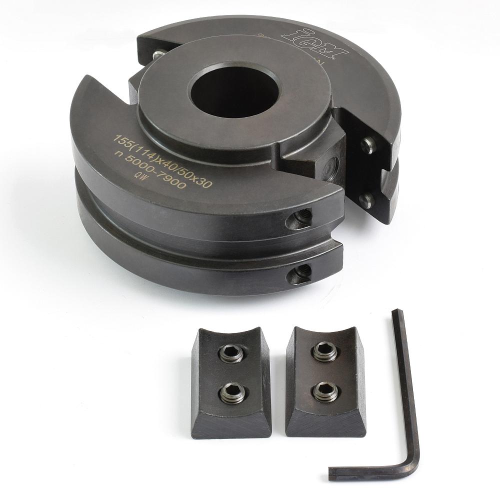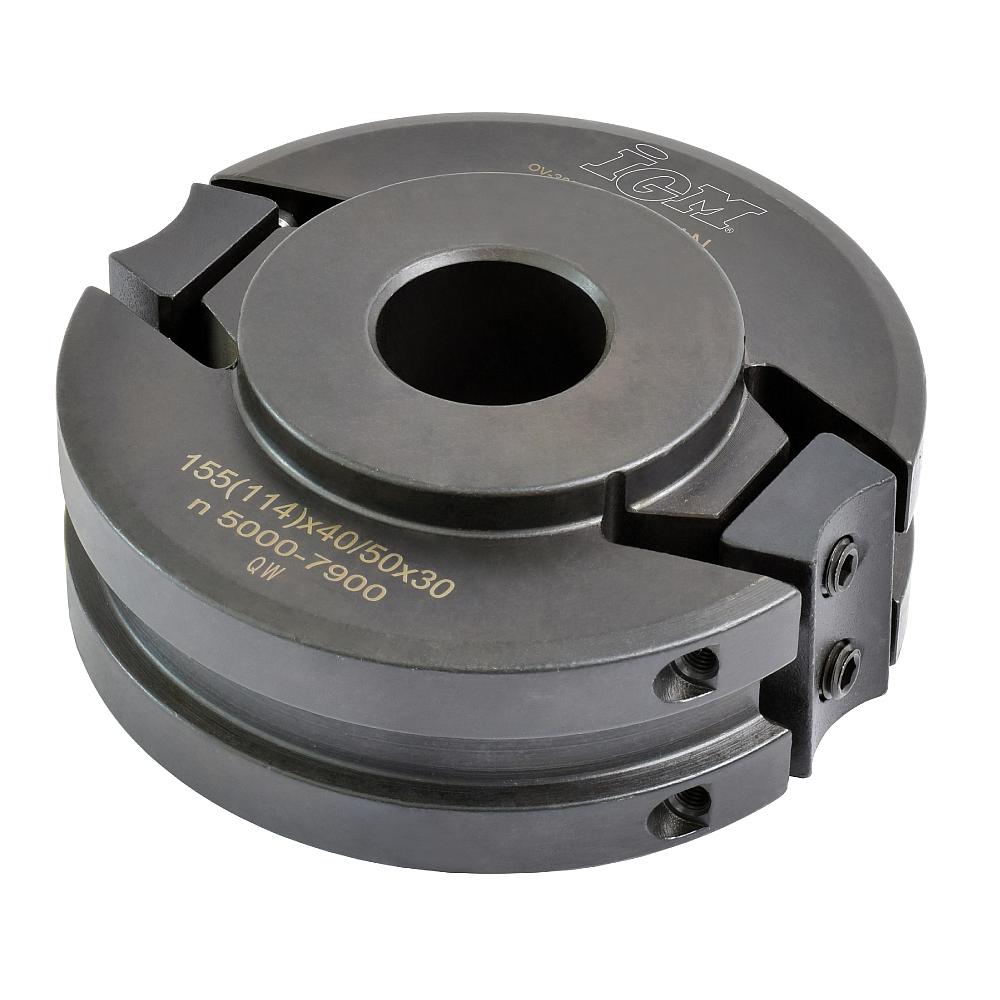 Der Grundkörper ist aus hochwertigem Stahl oder einer gehärteten Aluminiumlegierung (ALU) mit hoher Festigkeit gefertigt. Der Messerkopf ist mit einem Spannsystem für Profilmesser und Abweiser ausgestattet, die einen sicheren manuellen Materialvorschub (MAN) in den Schnitt ermöglichen. Das Euro-Spannsystem gewährleistet eine perfekte und genaue Spannung von Messern 40 × 4 mm und 50 × 4 mm Code F026 und Abweisern F027. Aufnahme d=30 mm.
