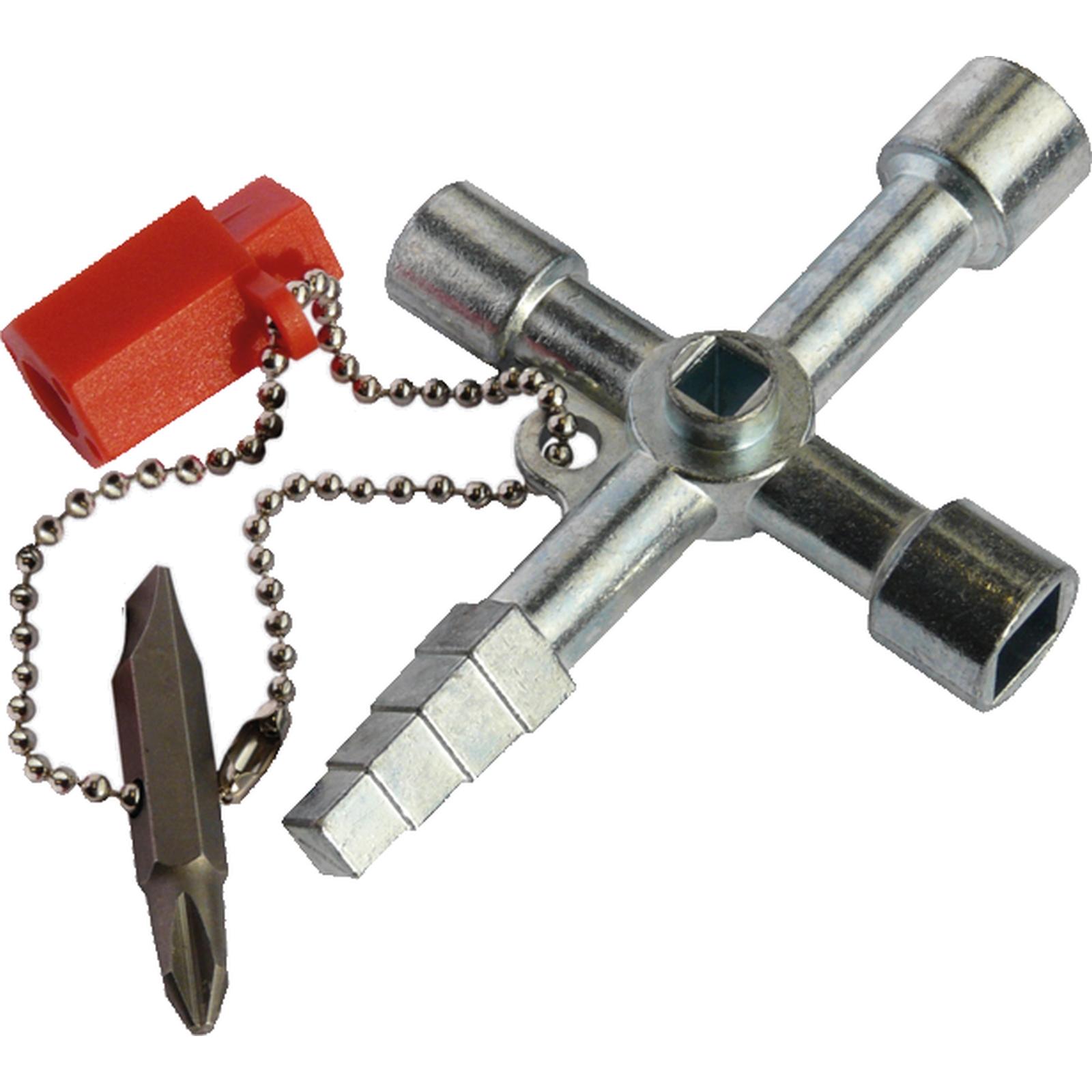 - Ein Universalschlüssel zum mühelosen Öffnen von Schaltschränken, Ventilen und technischen Anlagen in der Gas-, Wasser- und Elektrizitätsversorgung.