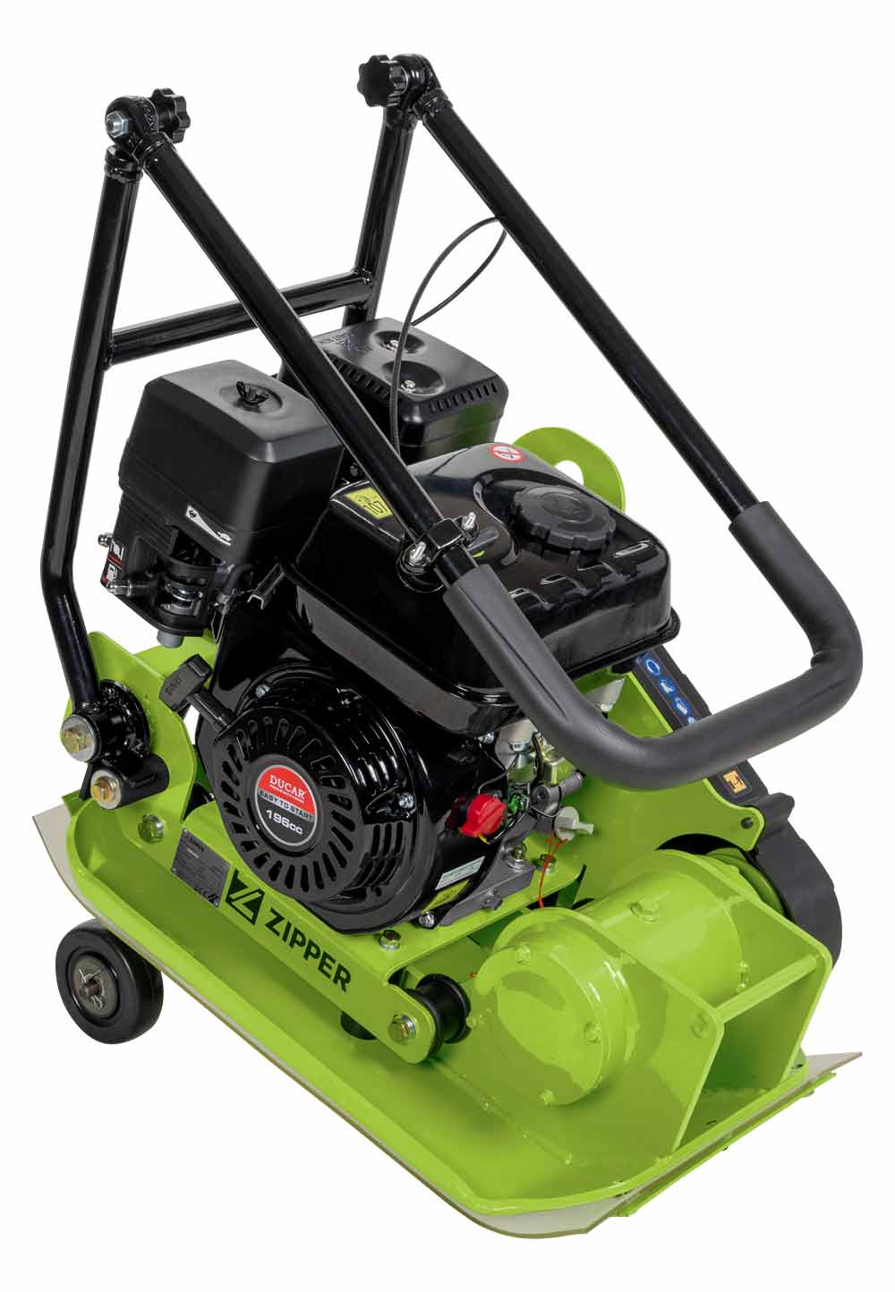 Die ZIPPER ZI-RPE60E vorwärts laufende Rüttelplatte ist besonders geeignet für Pflaster- und Ausbesserungsarbeiten im Wege-, Garten- und Landschaftsbau.